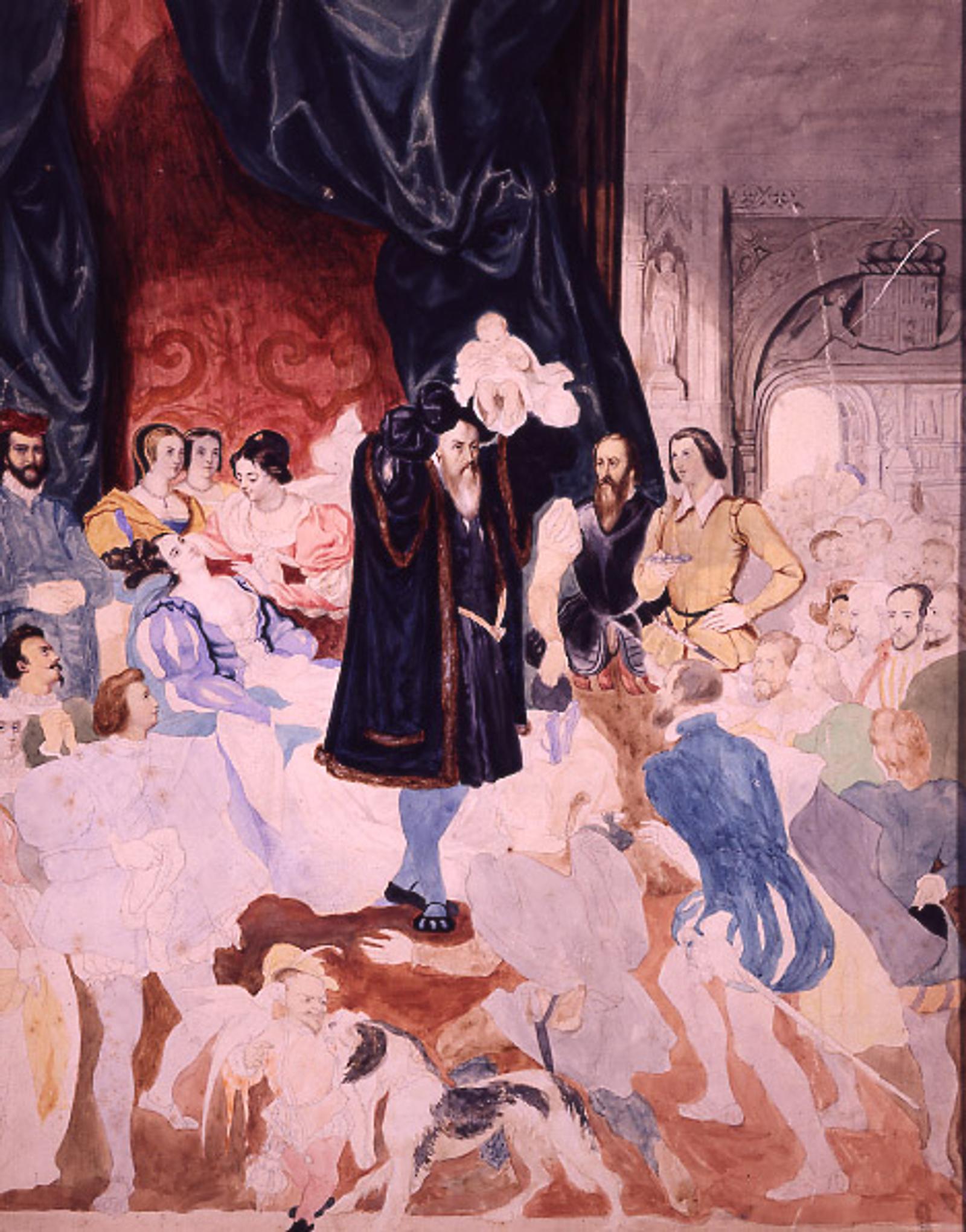 - Eugène Devéria, Esquisse pour la naissance d'Henri IV, aquarelle, 1826