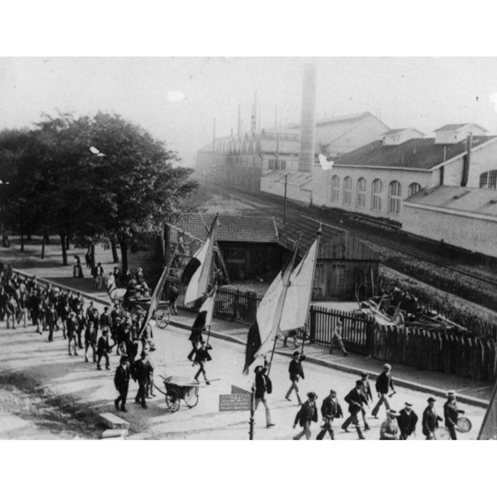 Le Creusot, Grèves de 1899 - 1900 : Défilé des grévistes en Juin 1899. Anonyme, © Écomusée de la Communauté Urbaine Le Creusot Montceau-Les-Mines.
